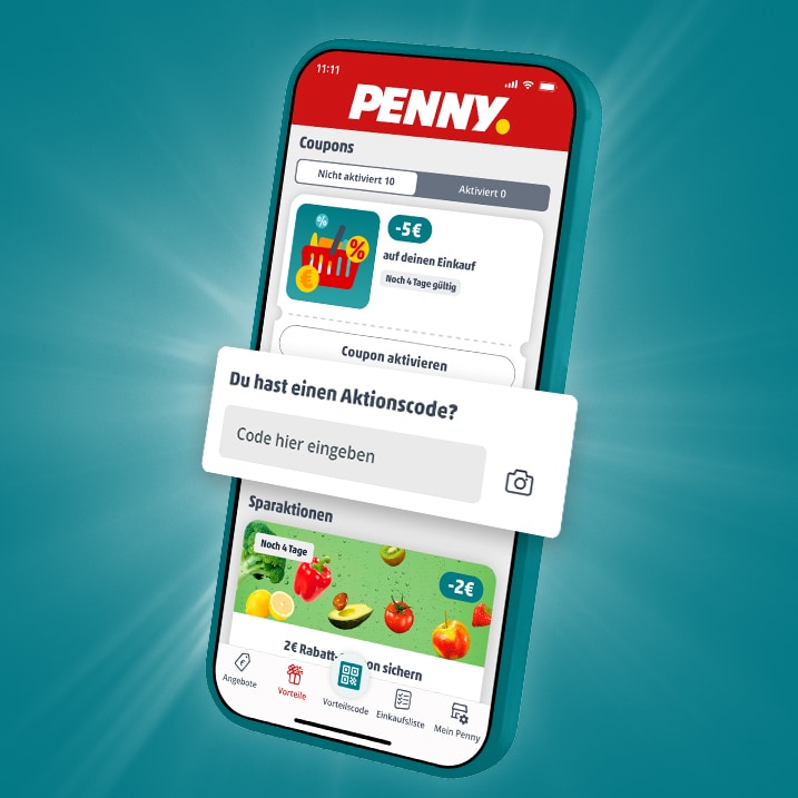 * Dieser Aktionscode ist pro Kundenkonto einmalig und nur am 1.4.2026 einlösbar. Voraussetzung ist die Registrierung eines Kundenkontos. Couponbedingungen und Einlösehinweise siehe Coupon-Details in der PENNY App oder unter penny.de/app.