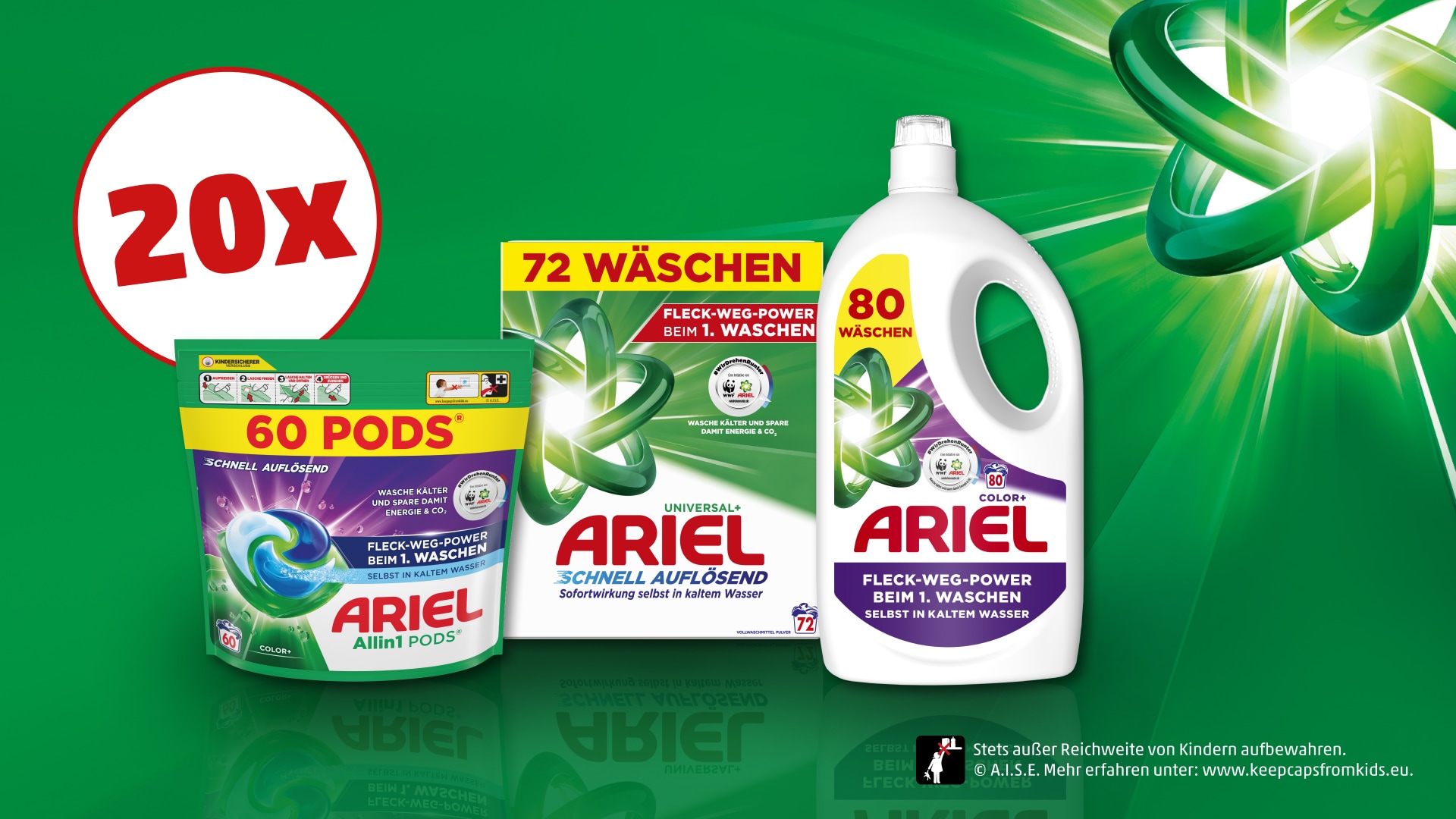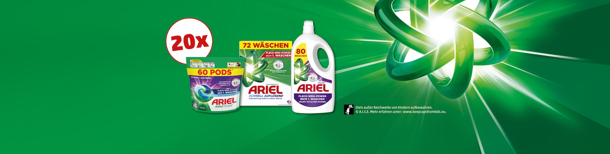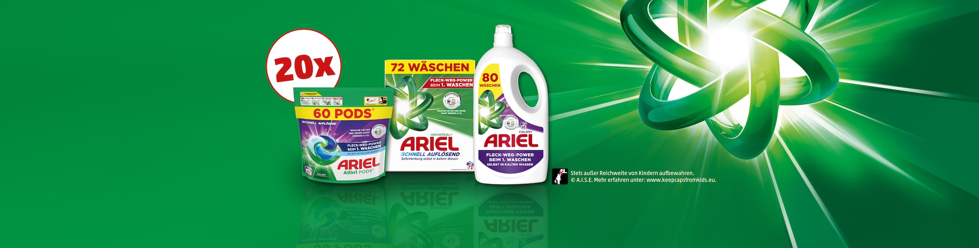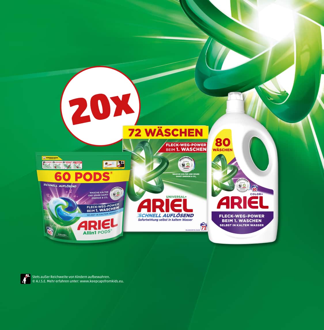 Beim Ariel Gewinnspiel hast du die Chance auf 1 von 20 Ariel Produktpaketen bestehend aus