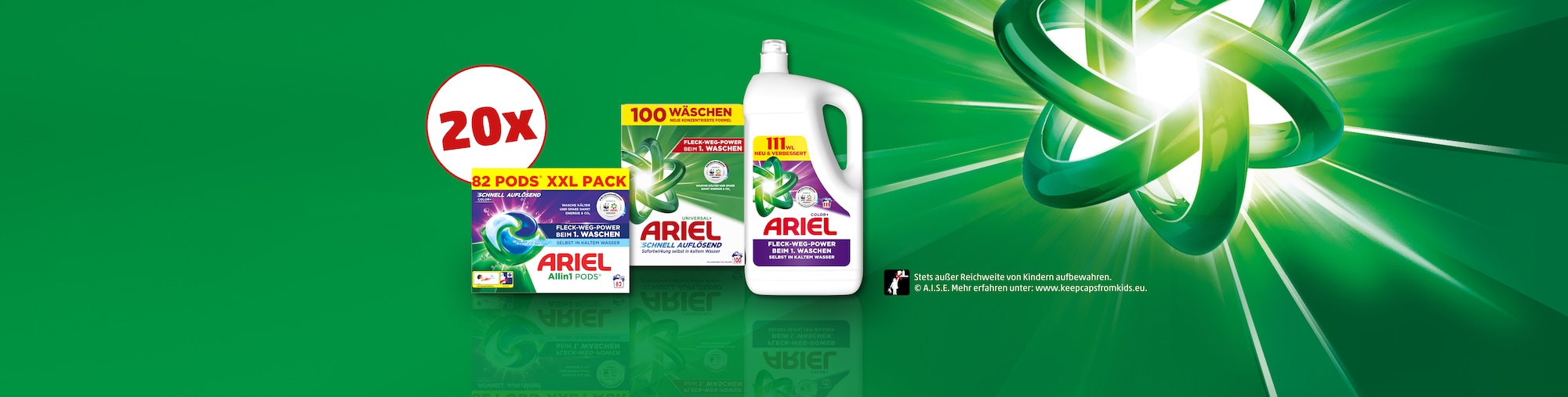 Mit etwas Glück sicherst du dir 1 von 20 Ariel Produktpaketen bestehend aus:
