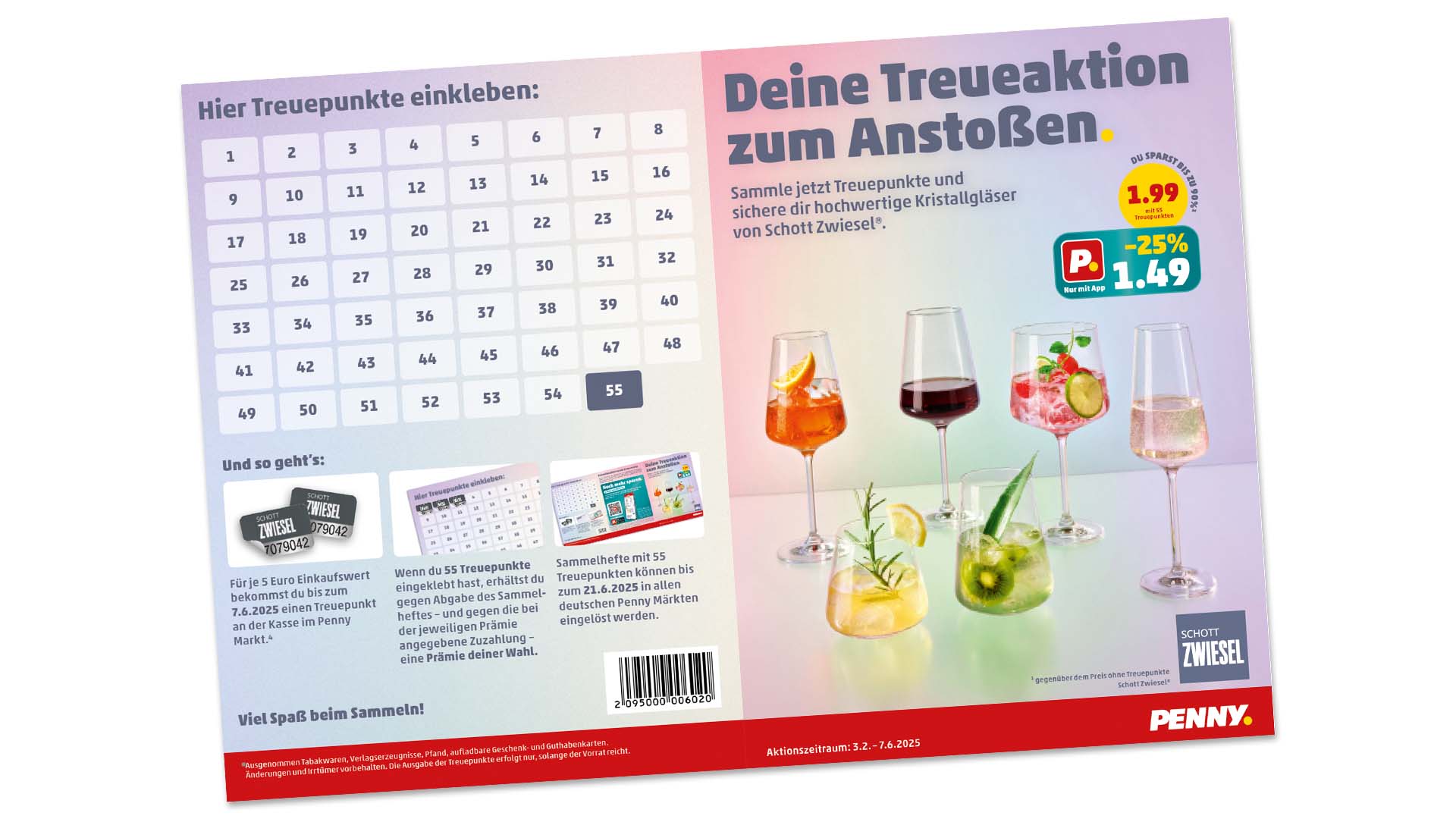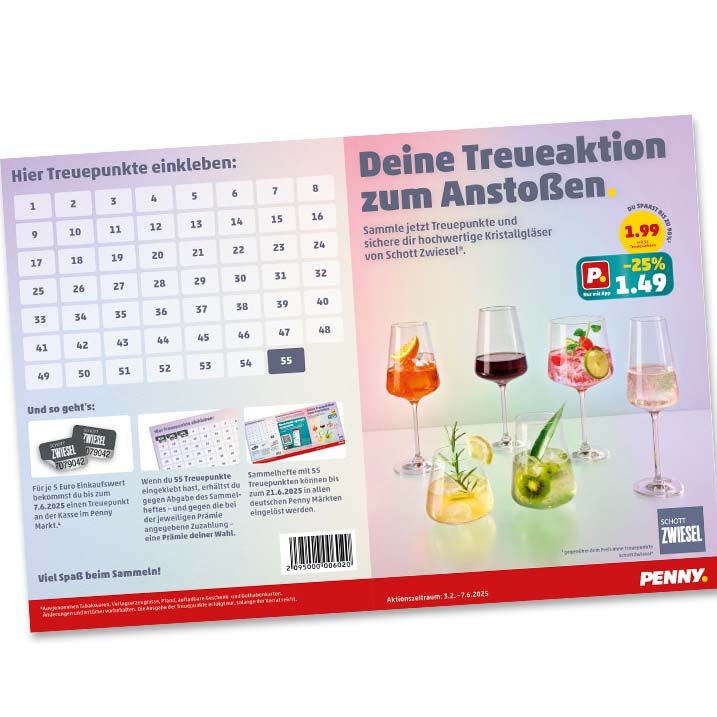 Du erhältst das Sammelheft zur Treueaktion entweder an der Kasse in deinem Penny Markt oder kannst es dir hier ganz einfach downloaden. Dann nur noch mitsammeln, Treuepunkte ins Heft einkleben und anstoßen – Cheers!