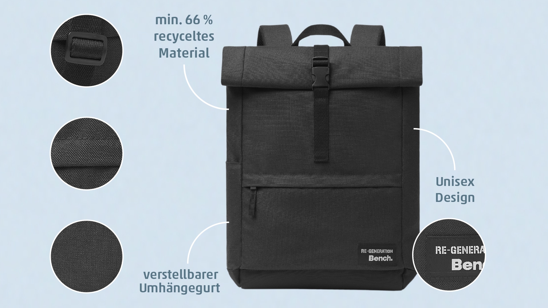 Oder doch eine Sporttasche? Die passt immer perfekt – egal wann und egal wohin es dich führt. Mit dem verstellbaren Gurt sitzt sie auch besonders angenehm auf der Schulter. Bei der Herstellung sind 22 PET-Flaschen verarbeitet worden.