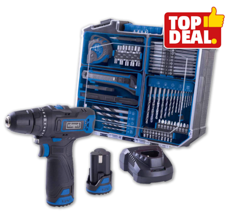 - Inkl. 2 kompakten 12-V-Li-Ion-Akku/1,3Ah-Bohrschrauber, 74-teiliges Werkzeug-Set