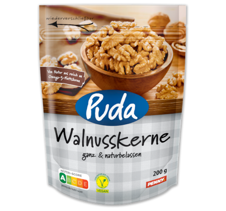 Der Vorteil ist exklusiv für PENNY App-Nutzer und nur für den Artikel PUDA Walnusskerne gültig. Abgabe nur in haushaltsüblichen Mengen. Rabattierung max. auf 24 Stück. Ab dem 25. Artikel gilt der Preis ohne App. Eine Barauszahlung ist nicht möglich. Nur solange der Vorrat reicht. Änderungen im Sortiment vorbehalten. Produkte können ggfs. nicht in allen Märkten erhältlich sein.