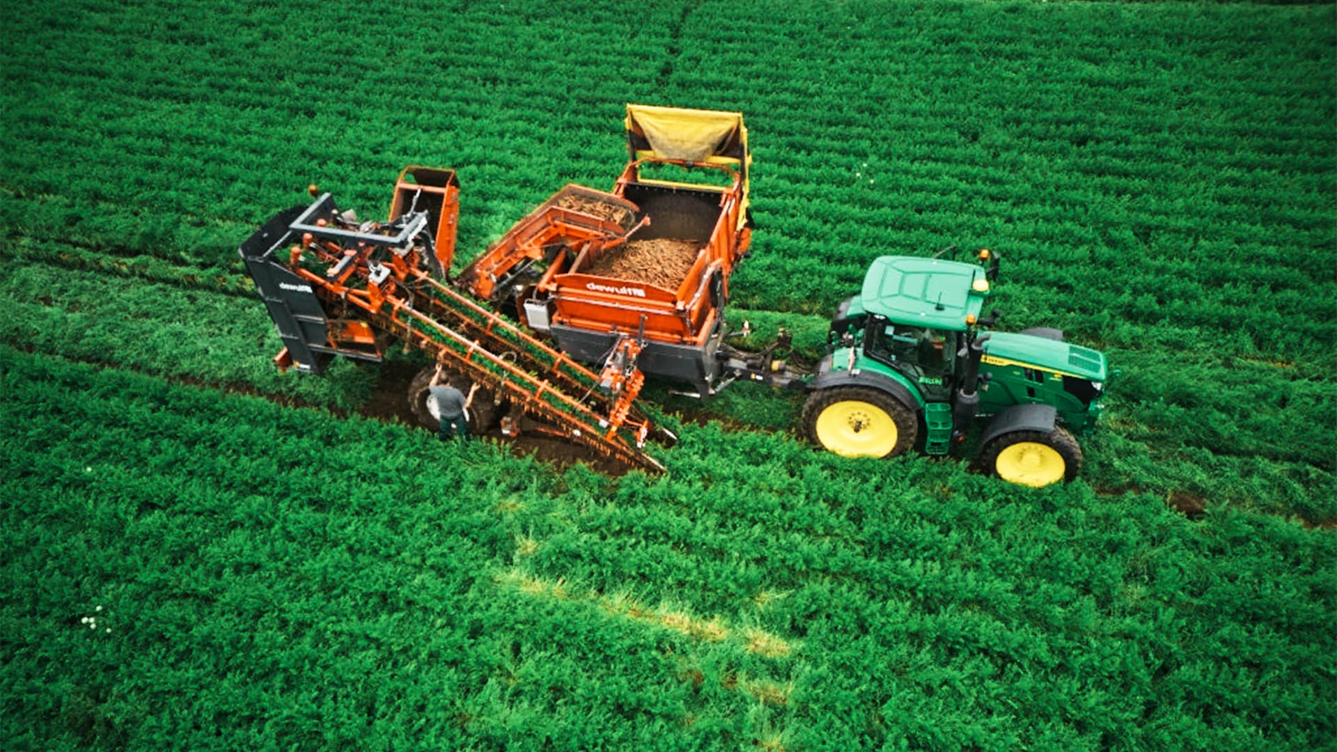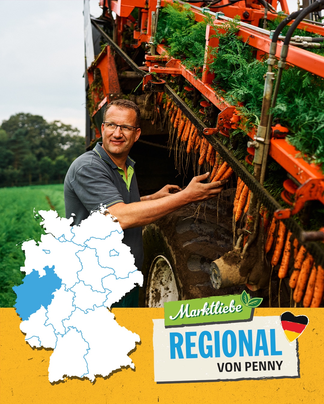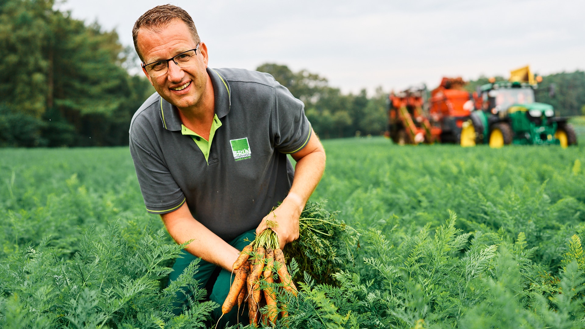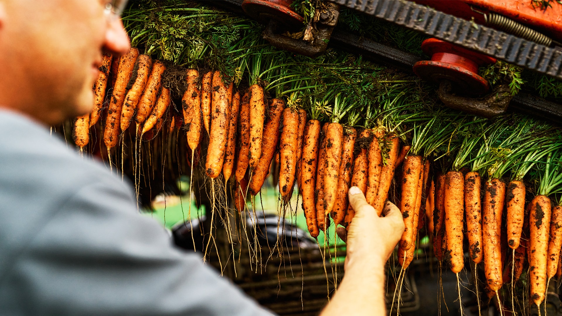 Sobald sich die Sonne im neuen Jahr zeigt und es trocken wird, säht Tobias Brun die ersten Möhren aus. Das Klima in NRW ist perfekt für das beliebte Wurzelgemüse: Das Frühjahr ist warm, der Sommer nicht zu heiß und auch nicht zu trocken. Mindestens genauso gut sind die lockeren und nährstoffreichen Böden! Ab Mitte Juni beginnt die erste Ernte. Dabei werden die knackig-frischen Möhren von einer Erntemaschine schonend am Kraut aus der Erde gezogen. Dann wird das Grün von der Maschine abgetrennt und fällt zurück auf den Acker, wo es als Dünger liegen bleibt.
