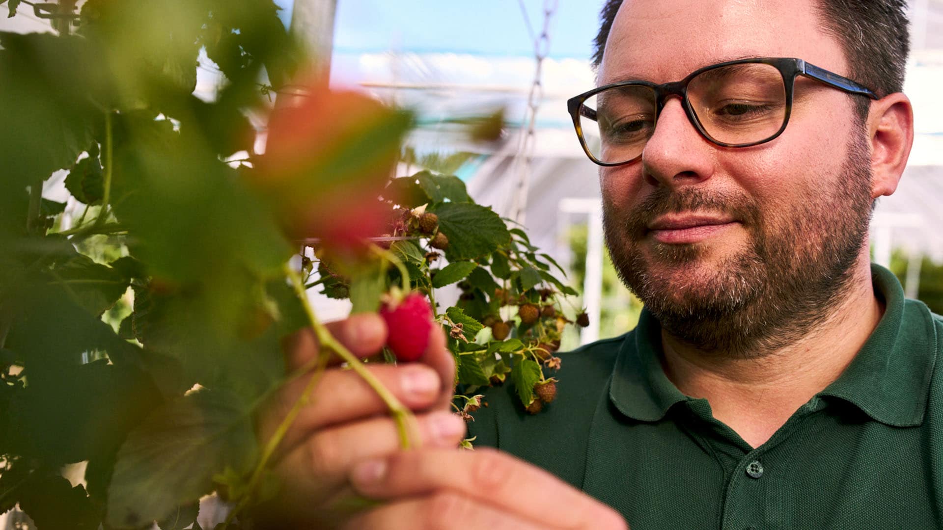 Bei Marktliebe Regional kommen Obst und Gemüse direkt aus deiner Region. Auf heimischen Höfen wie dem von Jochen Fehmel in Mutterstadt werden frische Himbeeren mit viel Liebe zum Produkt angebaut.
