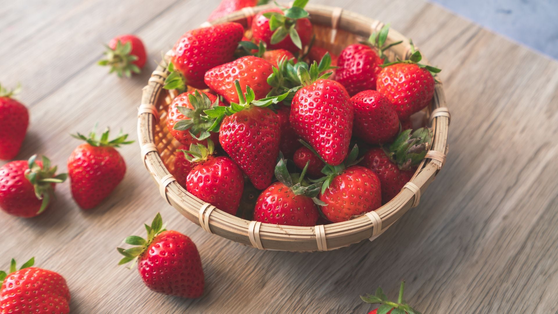 Du erkennst frische Erdbeeren daran, dass sie prall und glänzend sind und keine Druckstellen haben. Außerdem haben sie eine gleichmäßig schöne, rote Farbe. Schau dir auch die Blätter genauer an: Frische Erdbeeren haben grüne Kelchblätter ohne weiße Stellen und einen kurzen, grünen Stil.