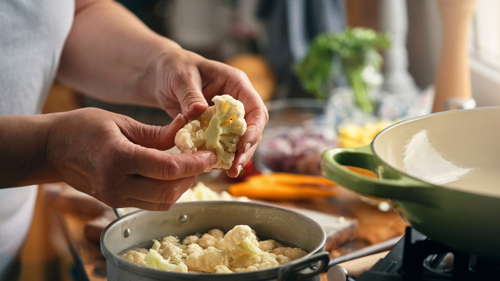 Du hast entschieden: Heute kommt Blumenkohl auf den Tisch. Eine super Wahl, denn das weiße Gemüse ist eine tolle Beilage zu Fleisch- und Fischgerichten. Oder lass den Blumenkohl die Hauptrolle auf dem Teller spielen und bereite ein leckeres vegetarisches Gericht zu. Aber wie lange musst du den Blumenkohl eigentlich kochen? Kannst du den Strunk mitessen und welche Garmethoden gibt es? Erfahre hier, woran du einen frischen Kopf erkennst und wie du ihn perfekt vorbereitest und schneidest. Zudem zeigen wir dir, wie du Blumenkohl im Ganzen kochen kannst, was du beim Rösten im Ofen beachten solltest und wie das Blanchieren funktioniert.