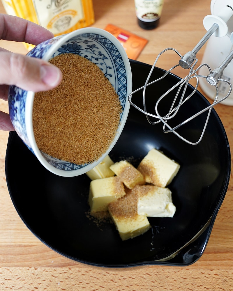Die weiche Butter und den Zucker in einer großen Schüssel hell und luftig aufschlagen. Das Ei und die Vanillepaste dazugeben und gut unterrühren.