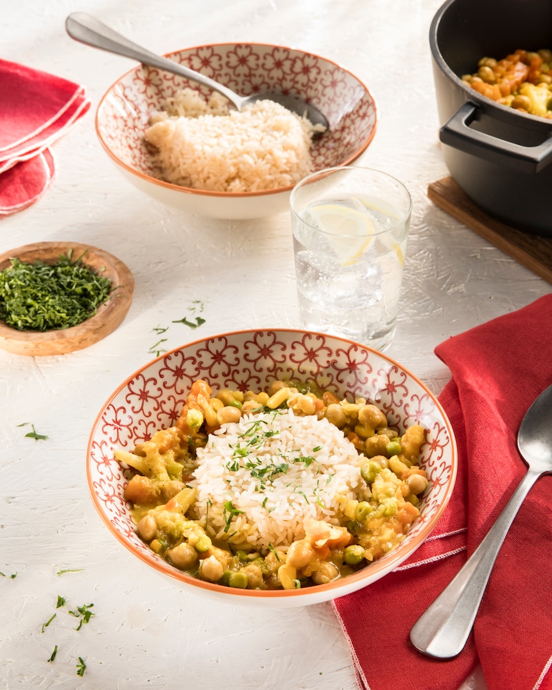 Tipp: Ein paar frische Kräuter wie Schnittlauch oder Petersilie oder Scheibchen von der Chili-Schote passen genau wie Reis sehr gut zum Gericht! Hier zeigen wir dir wie du ganz einfach Reis kochen kannst.