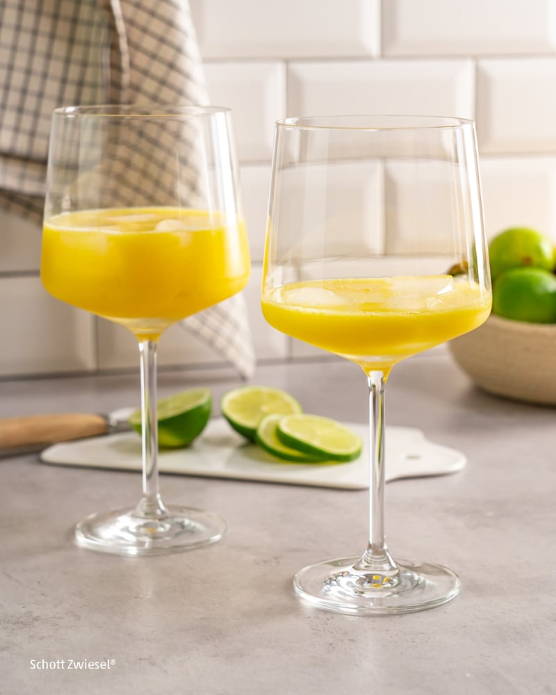 An jeden Glasrand 1 Limettenscheibe stecken.