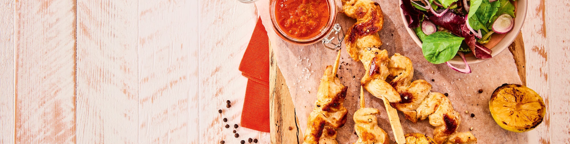 Etwas Öl in einer beschichteten Pfanne erhitzen, Fleischspieße darin von beiden Seiten bei mittlerer Hitze braten. Salzen und pfeffern.