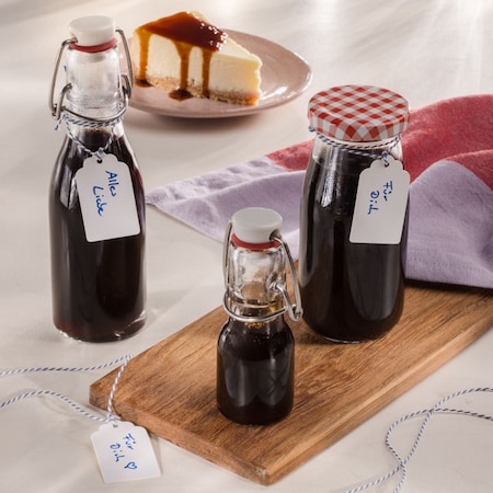 Schließlich häufst du großzügig Schlagsahne auf den Eiskaffee, gießt die restliche Schokoladensoße darüber und bestreust alles mit den Schokoladenstreuseln. Eine Cocktailkirsche ist die Krone! Miss Coffeeness sofort genießen.