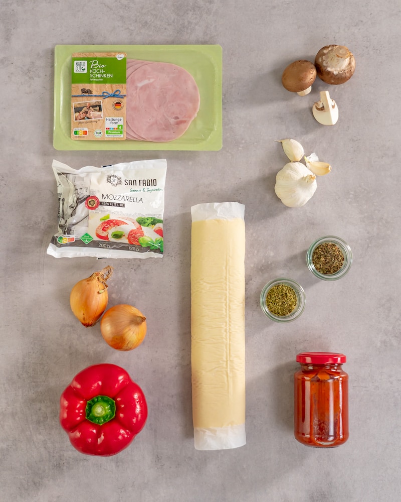 | 0.5 | Rolle Pizzateig (z.B. PENNY READY) |