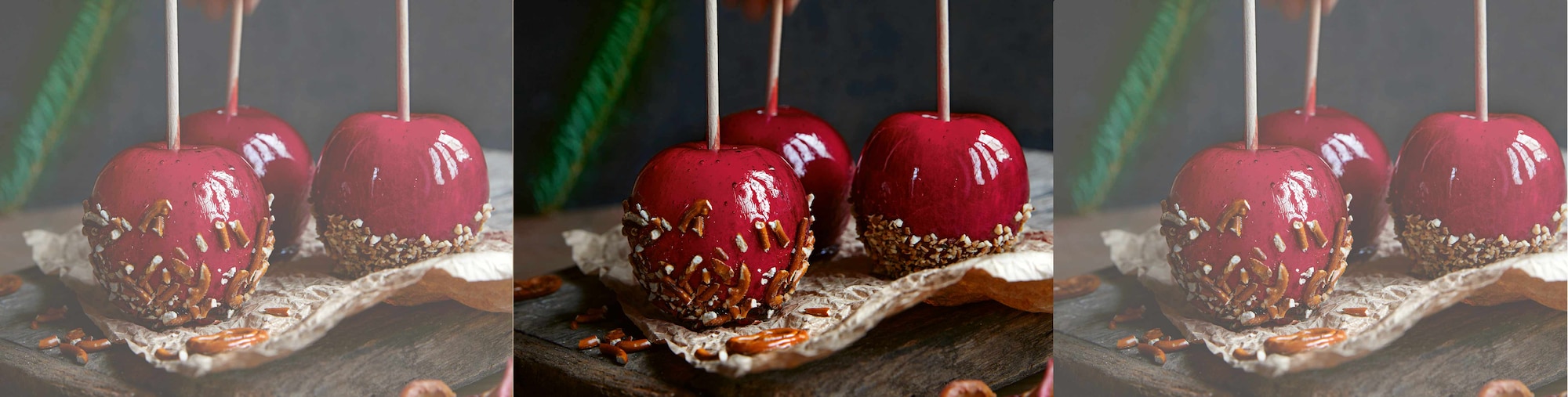 Die Äpfel nacheinander in den heißen Sirup tauchen, dabei vorsichtig drehen, bis sie ringsum überzogen sind. Liebesäpfel in gehackte Haselnüsse oder gehacktes Salzgebäck dippen und zum Auskühlen auf Backpapier setzen. In Zellophan verpackt, kannst du die Äpfel toll verschenken. Sie halten sich so bis zu zwei Wochen.