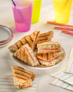 - Profis schneiden die Sandwiches diagonal durch. Warm schmecken die Dreiecke am Besten.